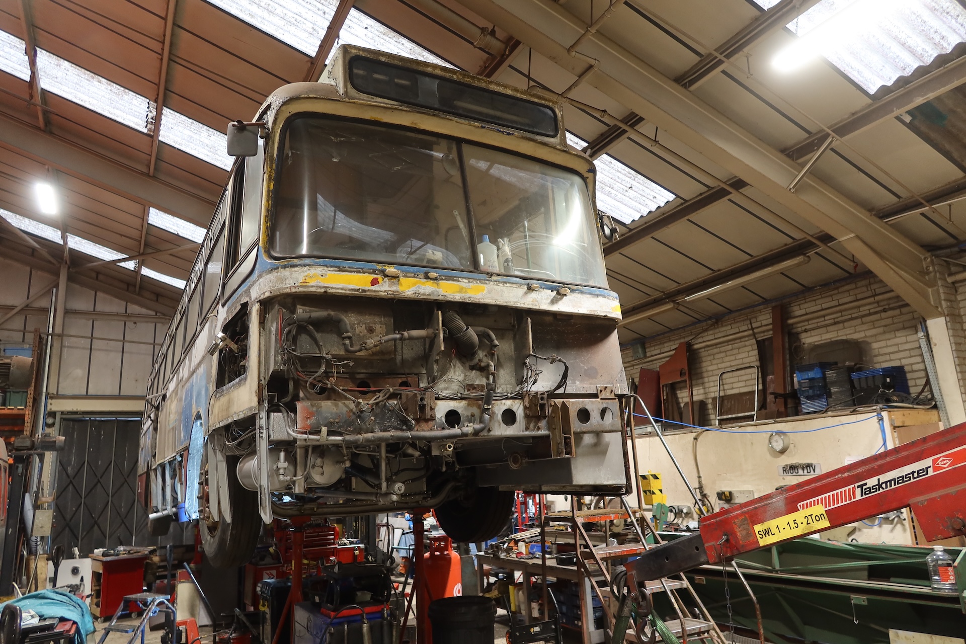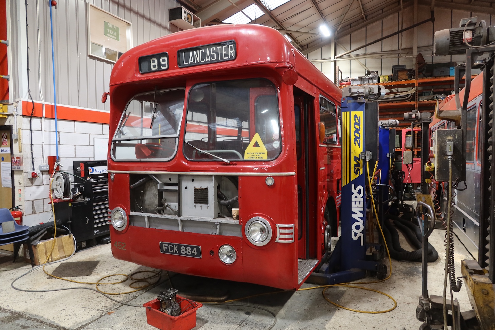 452 has had an engine transplant and after a good deal of effort this is now installed and the bus is ready for road testing. 382 is completing a lengthly and very thorough restoration. Virtually all the mechanical and electrical work was completed some time ago and now much of the bodywork is complete. Doors are always a challenge but the front ones are now fitted and the centre ones are being prepared. Lancaster 306 has now had most of its mechanical and electrical work completed so attention will turn to the bodywork. The work on 1349 has been confined to the interior. Most of the upstairs work is complete with new wood surrounds to all the windows and the ceiling has been painted and linoleum laid. The lower deck is now the focus and a new wooden floor has been fitted.